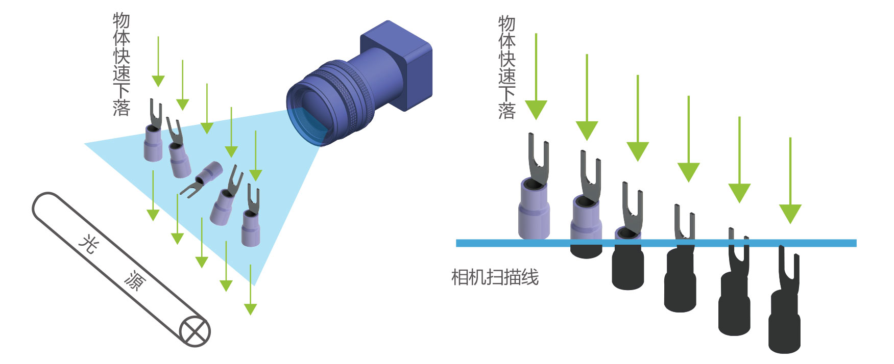 智皖智能視覺計數(shù)設(shè)備,搭配高速工業(yè)線陣相機,當(dāng)物料下落經(jīng)過相機識別區(qū)域時,線陣相機通過高速掃描,精準(zhǔn)捕捉物料下落姿態(tài)、形狀等信息,并上傳至處理中心,通過處理中心強大算法實時分析處理,精準(zhǔn)計算出物料個數(shù),實現(xiàn)實時計數(shù)功能。